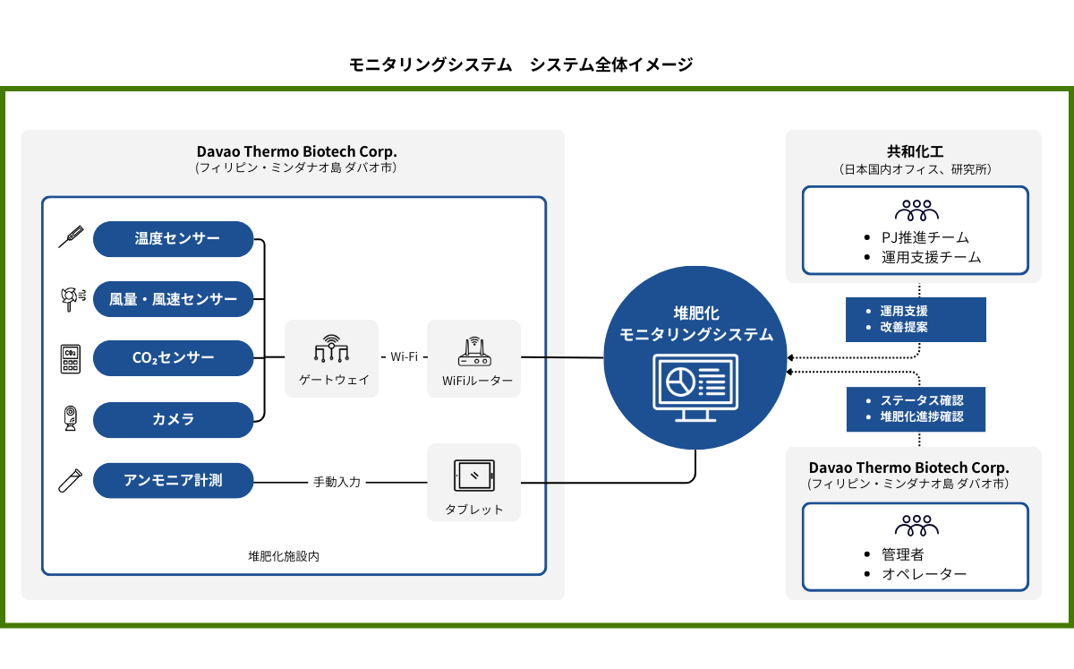 現地の課題と共和化工の狙いが一致したことから、両者で協力し「堆肥化施設維持管理モニタリングシステムの導入」プロジェクトが始まります。