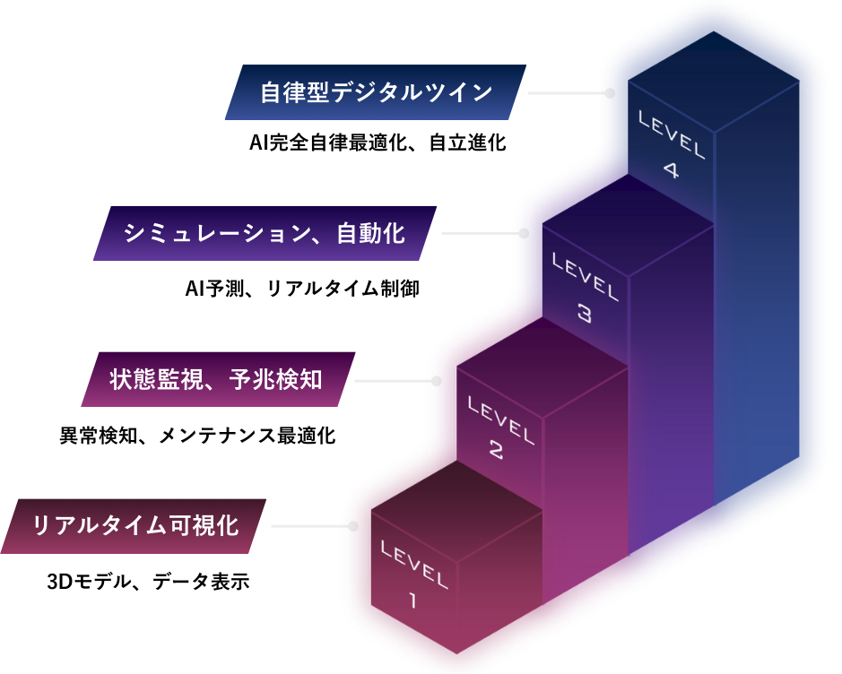 デジタルツインというと、シミュレーションや高度な活用をイメージされがちですが、現場DXではIoTによるデータ収集から段階的に進化をしていきます。