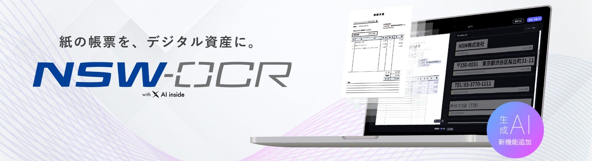 NSW-OCRは手書き書類や帳票の文字を識別し、自動でデータ化するサービスです。